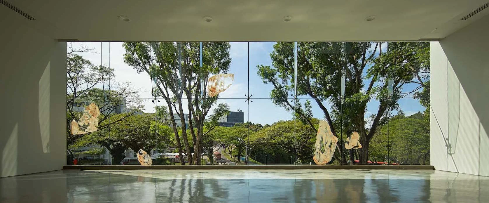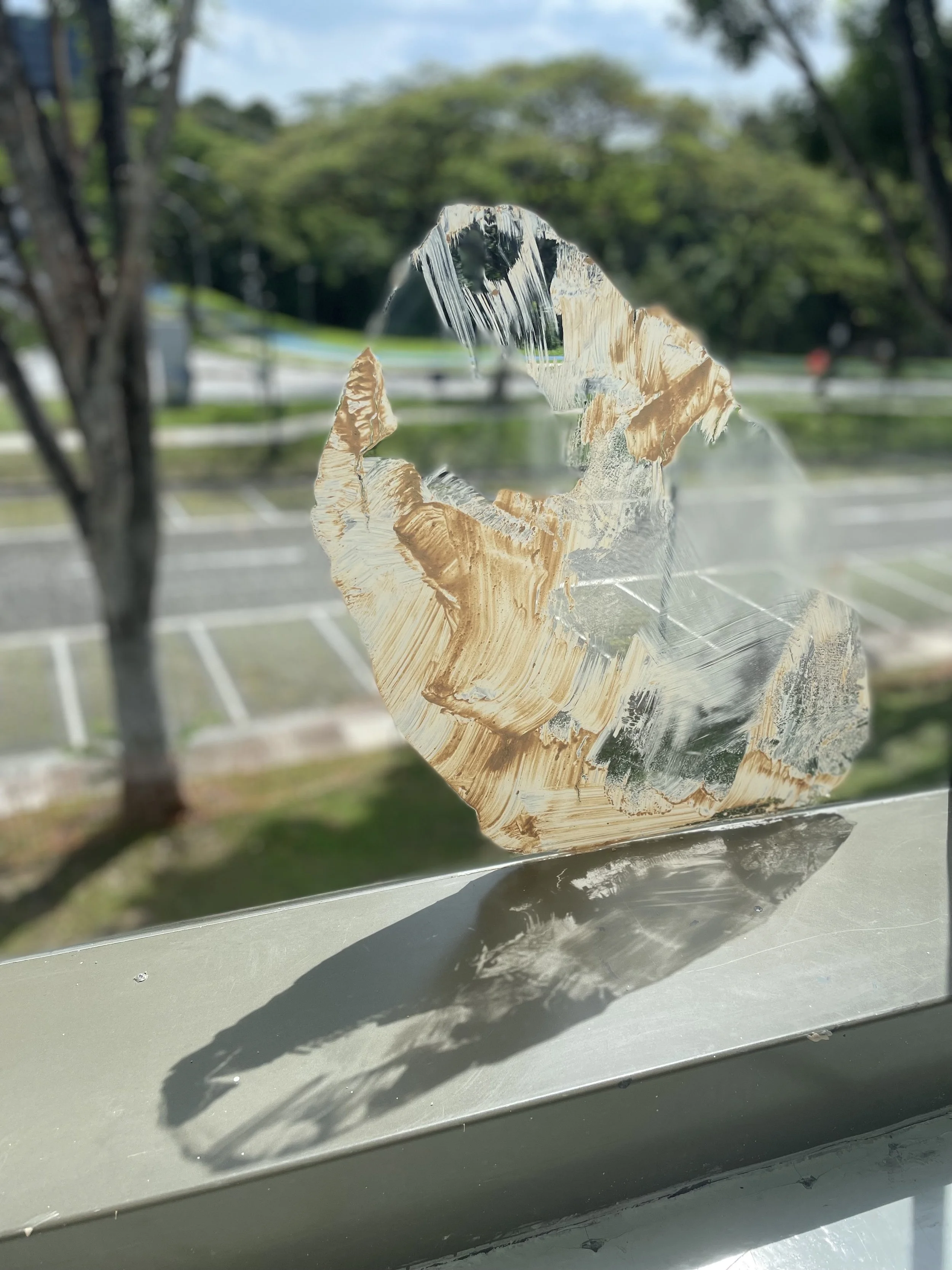 Mapping Temporalities, mud on glass, exhibition view, NIE Art Gallery, Singapore, 2022.